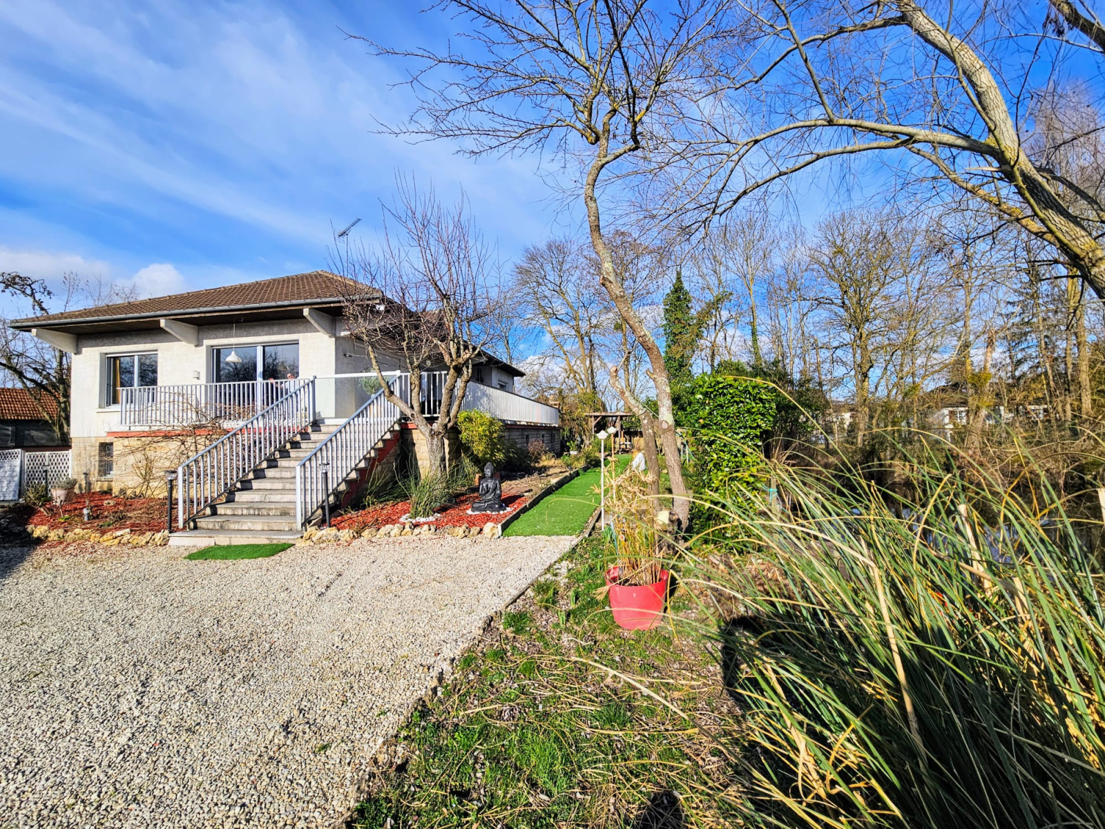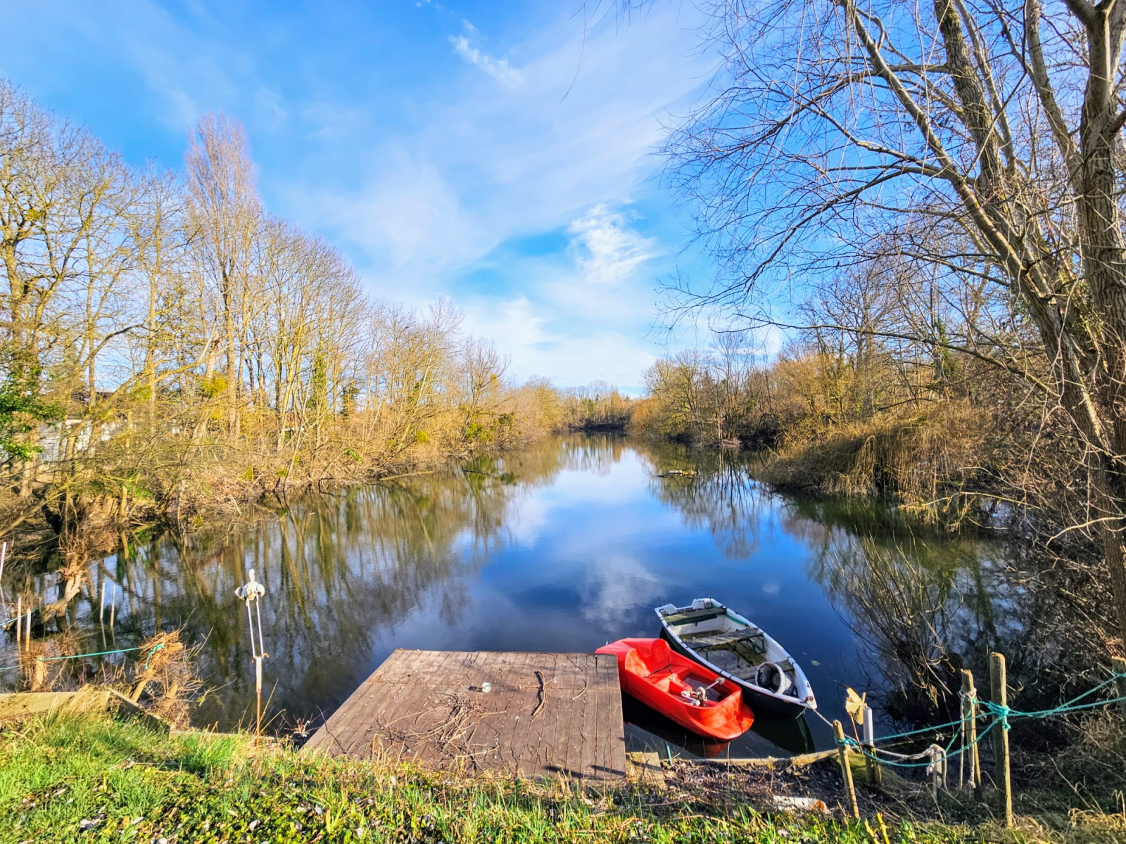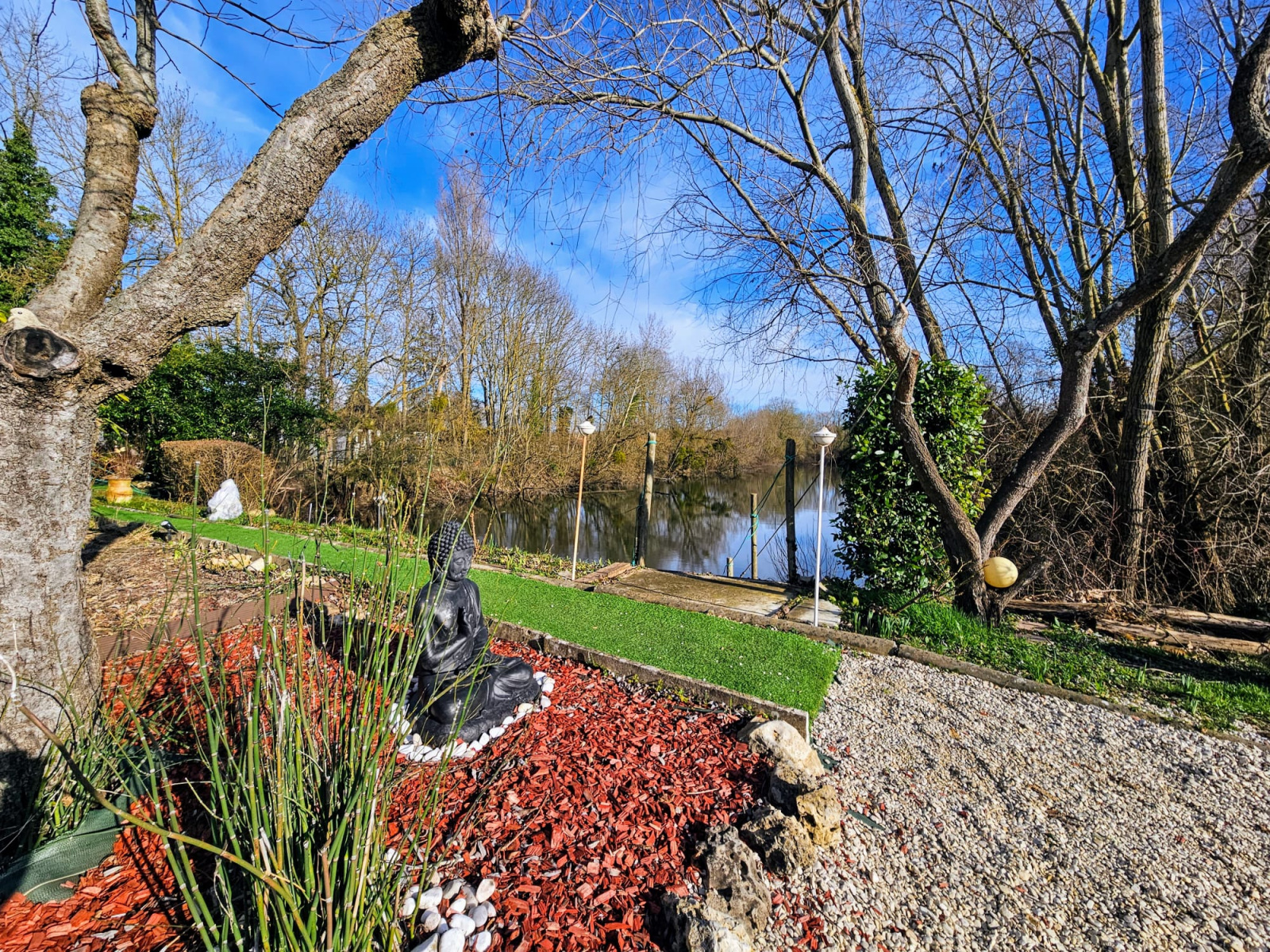 À l’extérieur, la propriété propose une vaste terrasse plein sud de 80 m², un superbe jardin arboré autour de l’étang, un verger et un cadre de vie unique. Une dépendance de 40 m² permet d’envisager différents projets : atelier, studio ou bureau.