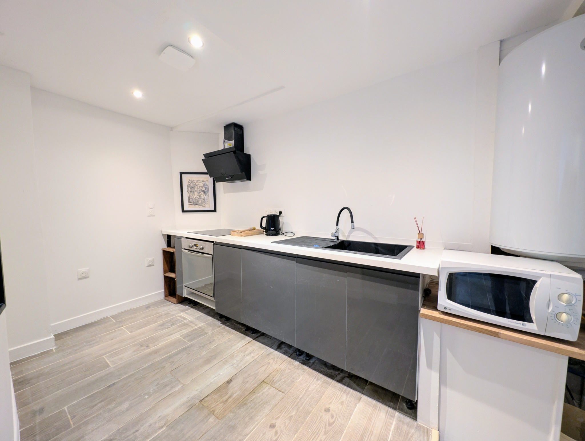 Dès l’entrée, vous serez séduit par sa cuisine aménagée et entièrement équipée, fonctionnelle et raffinée. L’espace se poursuit sur une pièce de vie lumineuse, chaleureuse et conviviale, parfaite pour recevoir ou profiter de moments en famille.