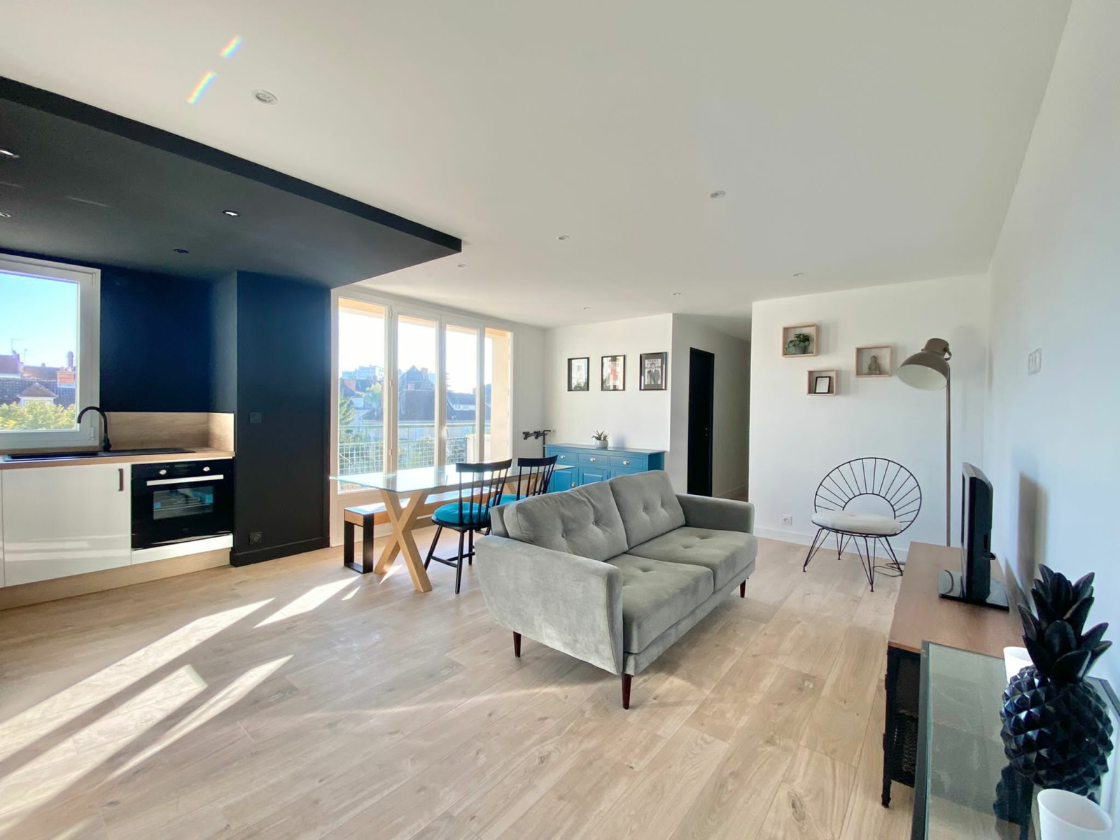 En exclusivité, spécial investisseurs, votre agence Bien Chez Soi Immobilier vous propose une incroyable opportunité Secteur Ecole de commerce proche centre-ville et de toutes commodités. Ce bien est actuellement loué par deux étudiants, 450euros et 420euros, la chambre par mois, encore une chambre de disponible ! Ce très bel appartement traversant. Sis au troisième étage avec ascenseur, vous offre, sur une surface de 64,20 m2 carrez, refait à neuf est composé d’une entrée , une lumineuse pièce à vivre avec cuisine aménagée et équipée, trois chambres, une une salle d’eau. Pour compléter ce bien un balcon d’une superficie de 4m² et d’une cave et le stationnement est aisé et gratuit. Ce bien est vendu entièrement meublé, prêt à louer. Charges annuelles de 2160 €uros, comprenant, ascenseur, chauffage et eau froide. Taxe foncière 1100 €uros. Venez visiter sans attendre cette belle et rare opportunité d’investissement clés en mains ! Magnifique !