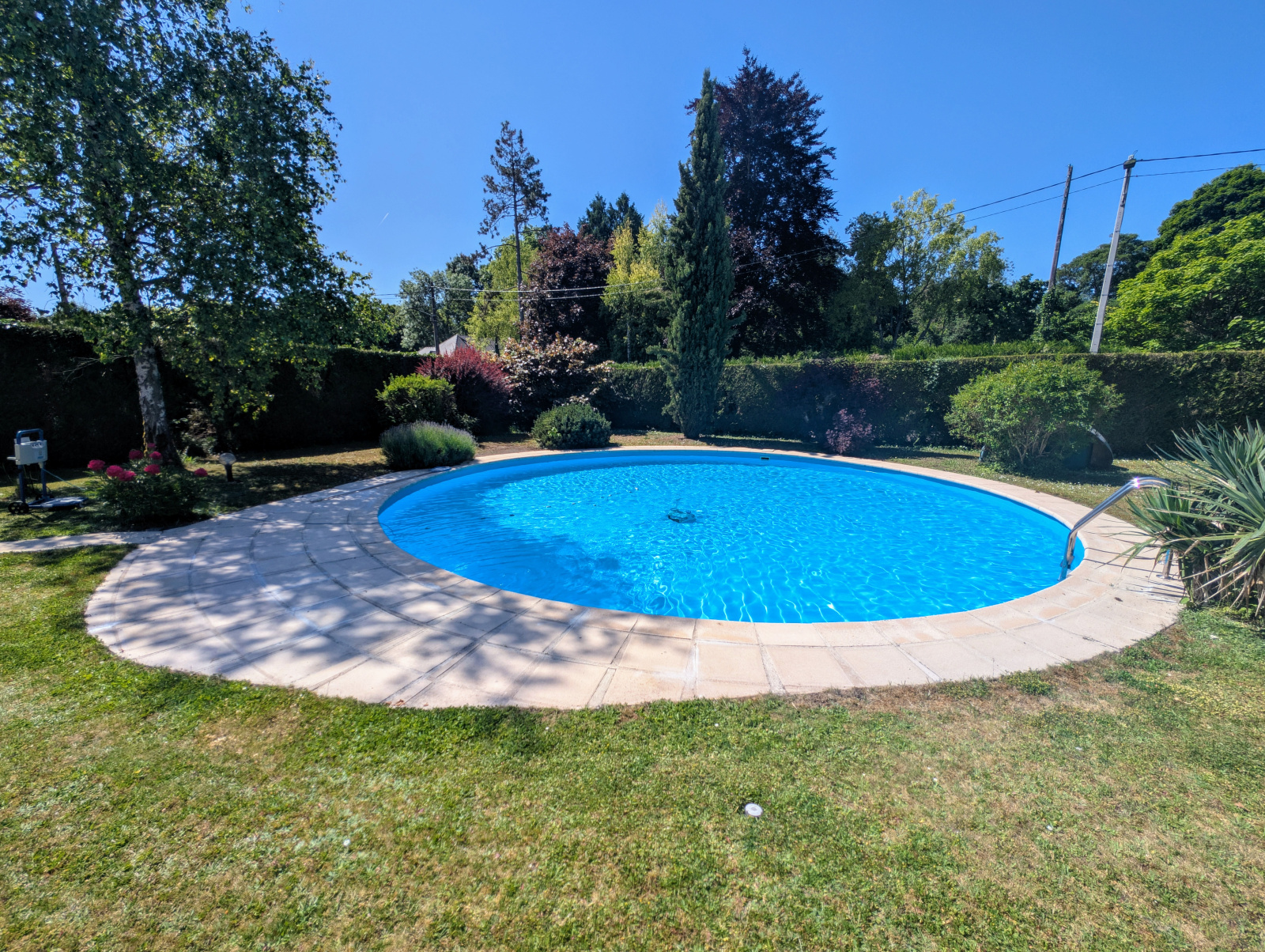 À l’extérieur, vous profiterez d’une piscine creusée de 10 mètres de diamètre, équipée d’un système de pompe fonctionnel, idéale pour les journées d’été en famille.