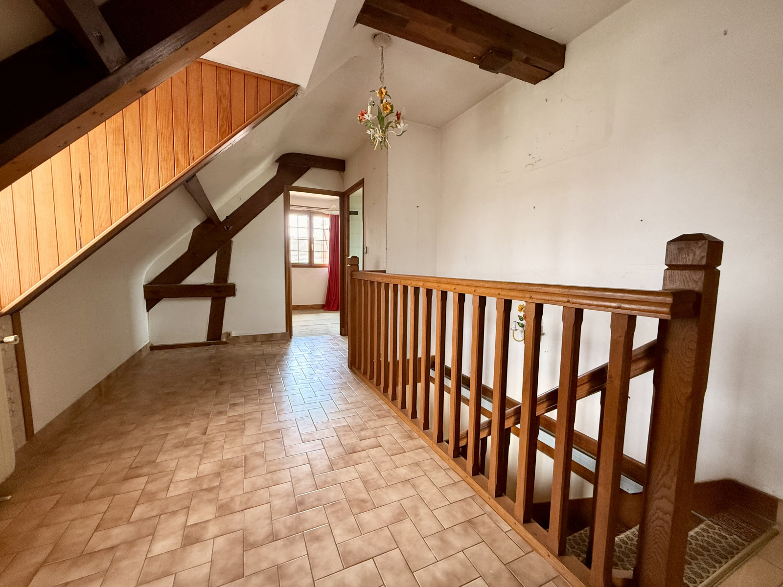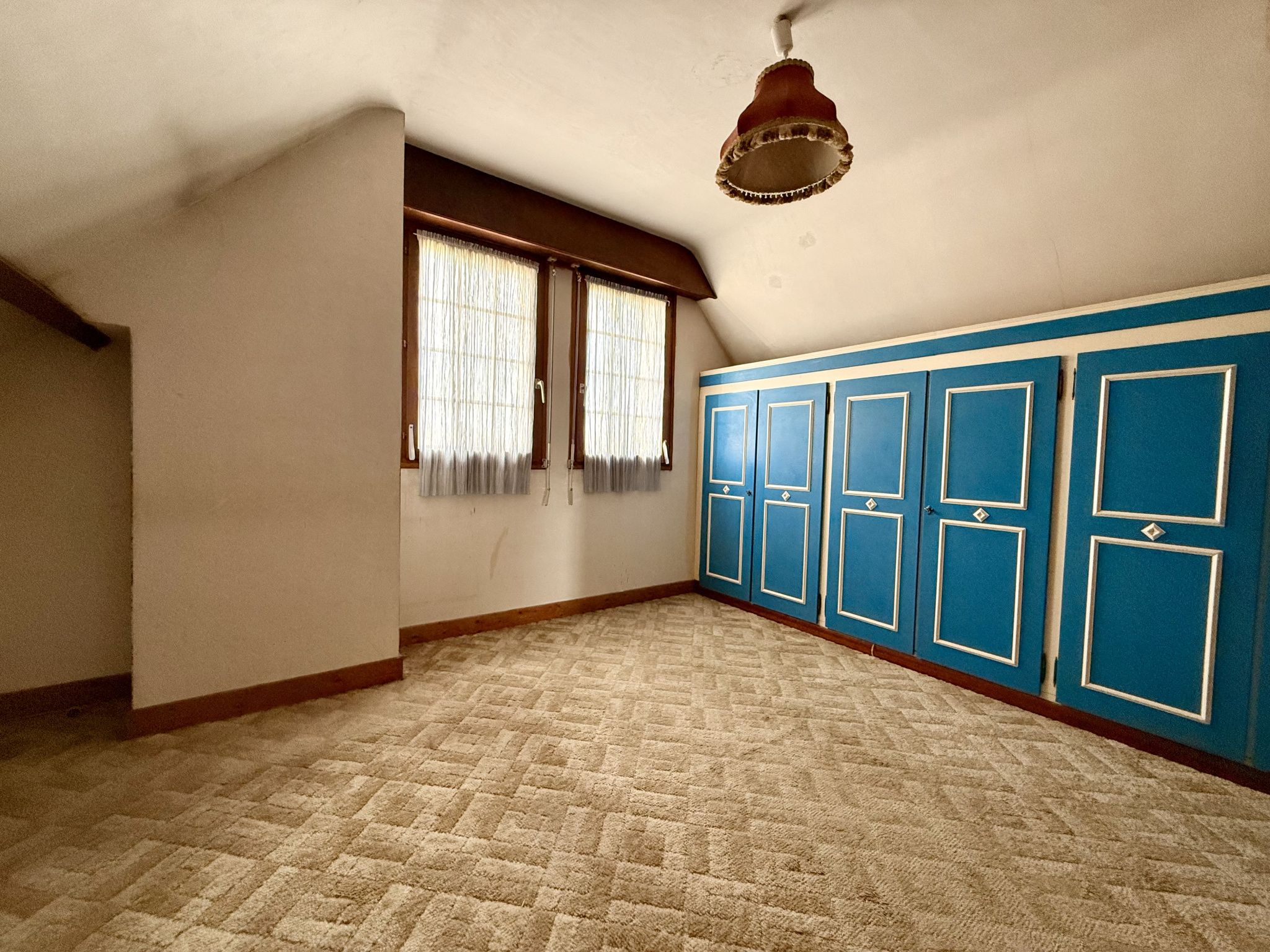 À l’étage, vous trouverez deux chambres d’environ 9 m² et 11 m², toutes deux équipées de placards intégrés, ainsi qu’un espace dressing/rangement indépendant et une salle d’eau.