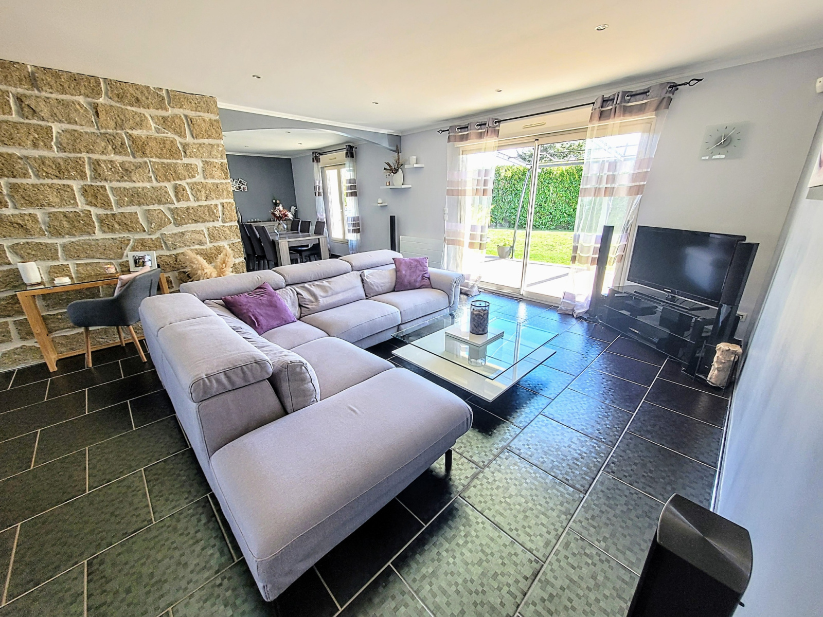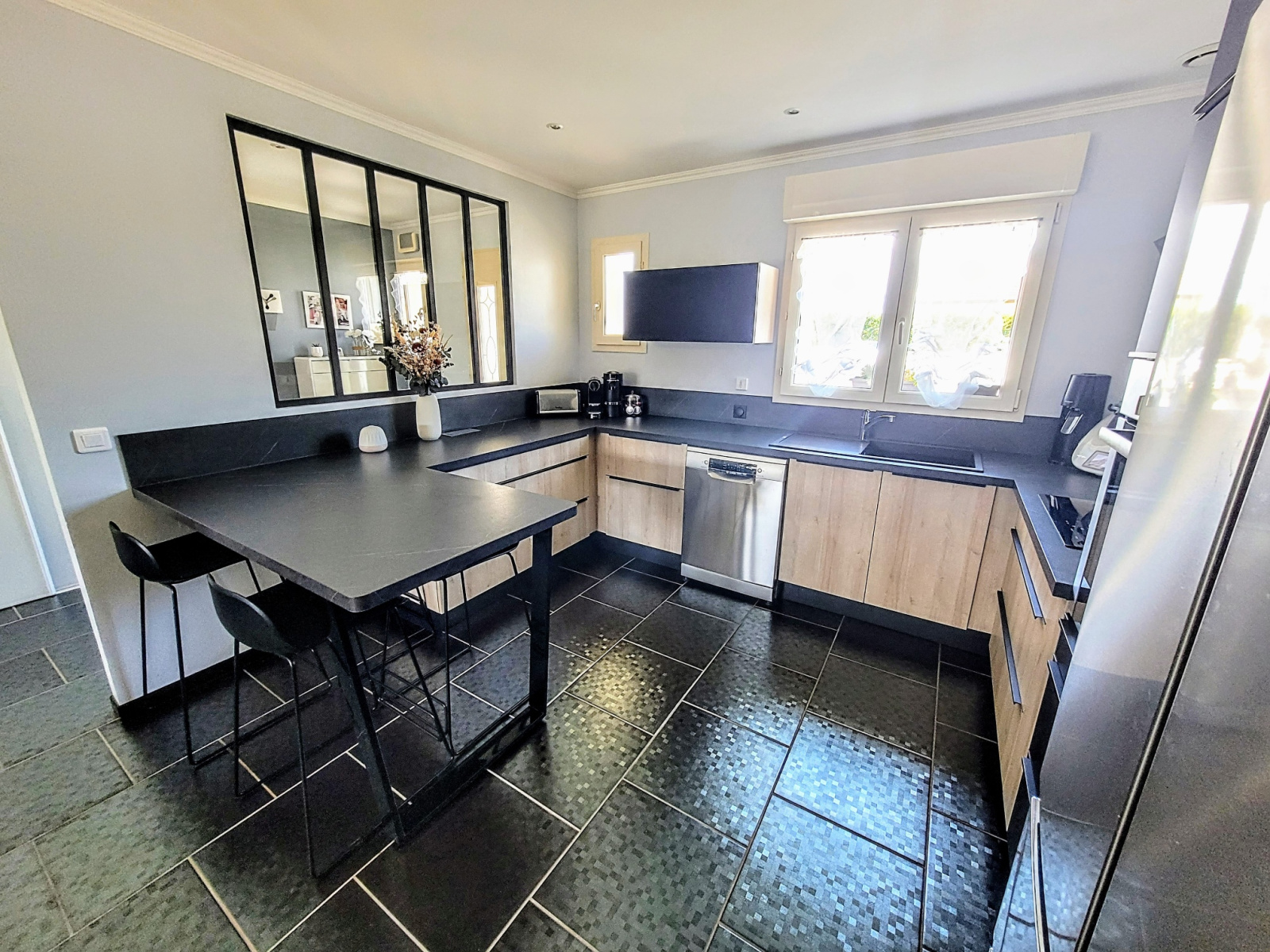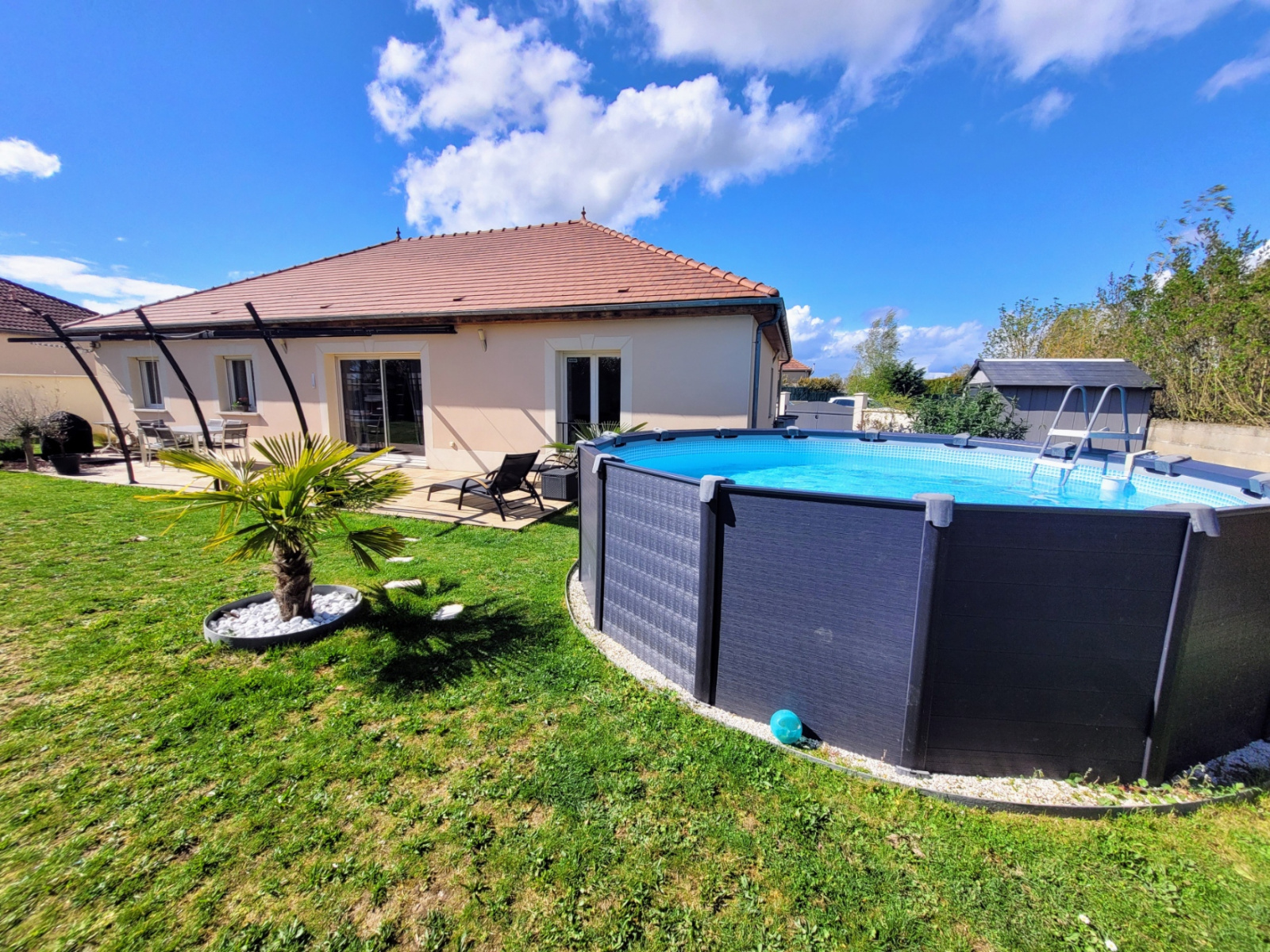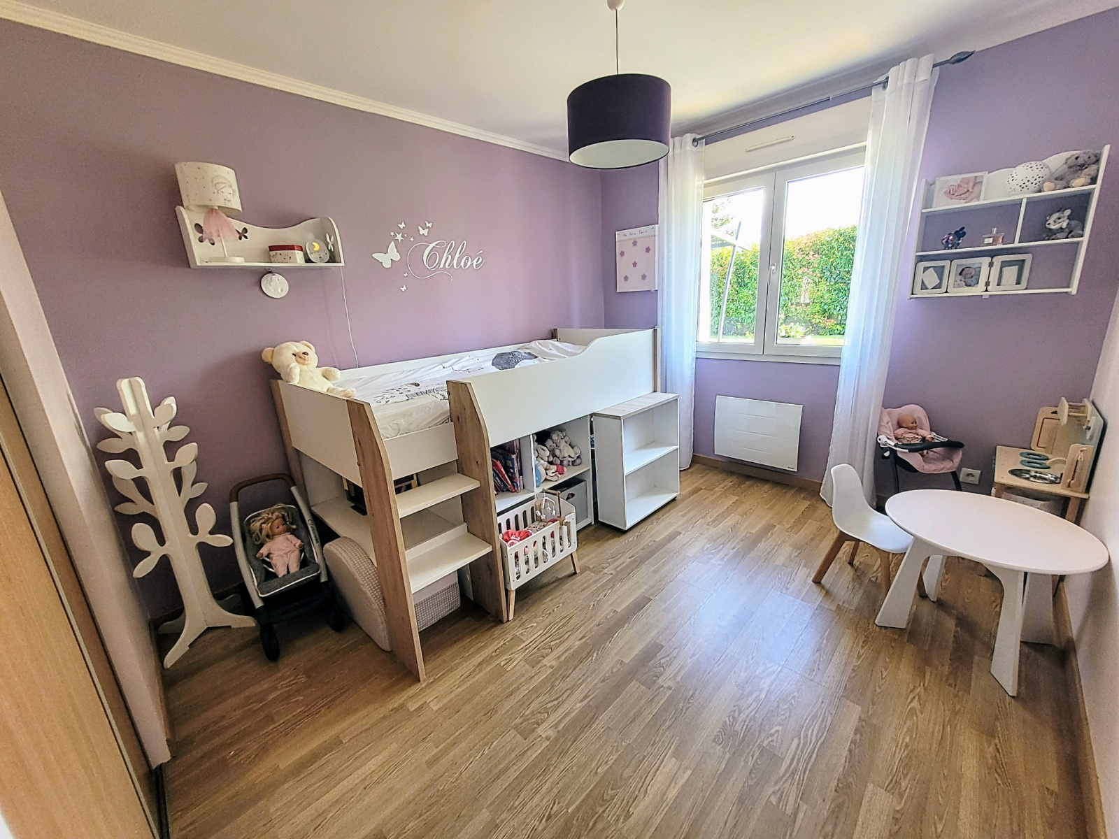 Cette maison dispose de 3 chambres spacieuses avec dressing offrant de nombreux rangements parfaits pour une famille. La vaste salle de bain est équipée d'une baignoire d'angle, d'une douche à l'italienne ainsi que de deux vasques, idéale pour se détendre après une longue journée de travail. Elle offre également un double salon/séjour d'environ 45 m² ainsi qu'une cuisine semi-ouverte équipée récente avec verrière. La maison est très lumineuse grâce à ses grandes baies vitrées donnant sur un jardin verdoyant avec une piscine hors-sol. Vous bénéficierez également d'un garage pour un espace de stockage en supplément.