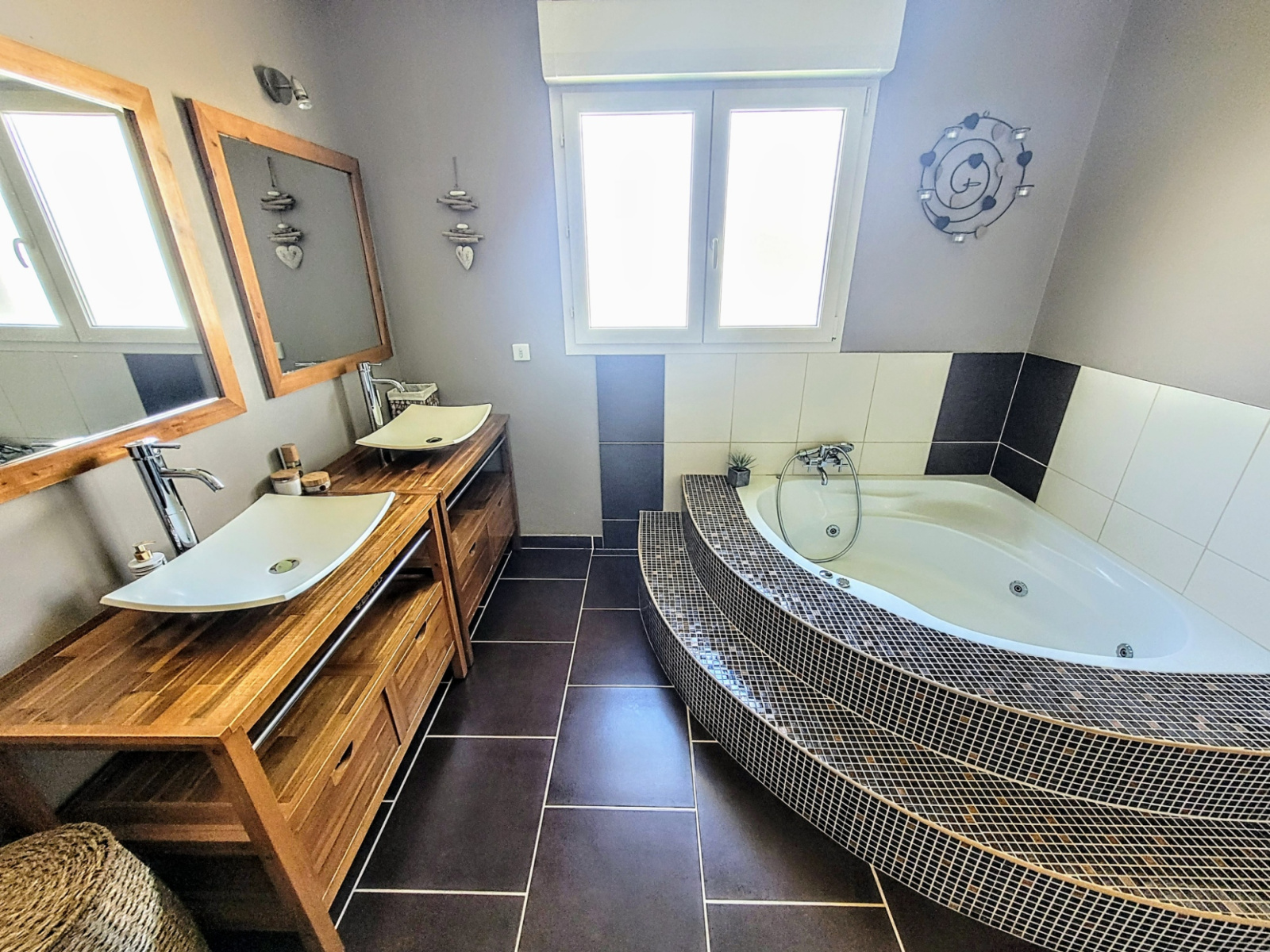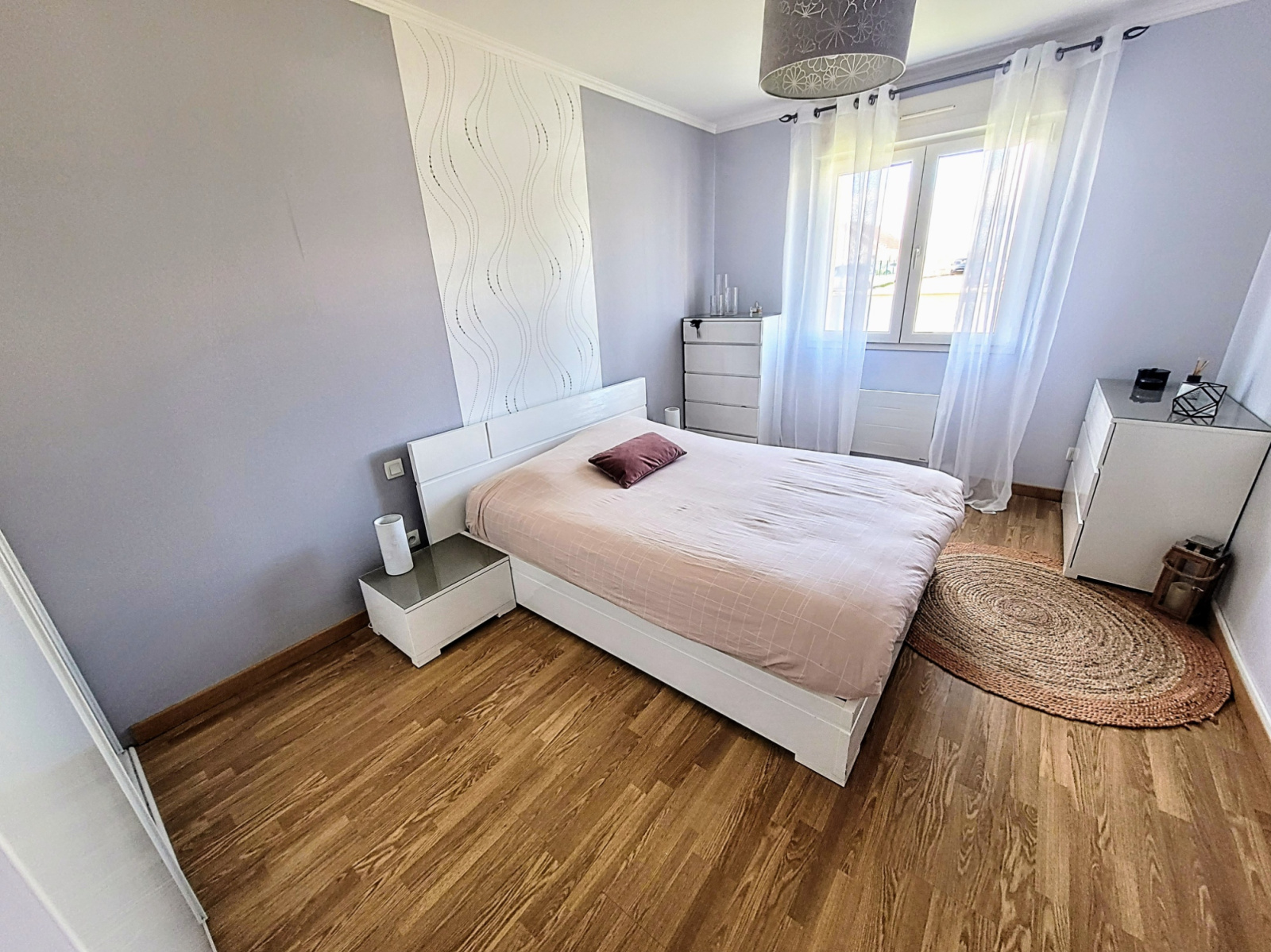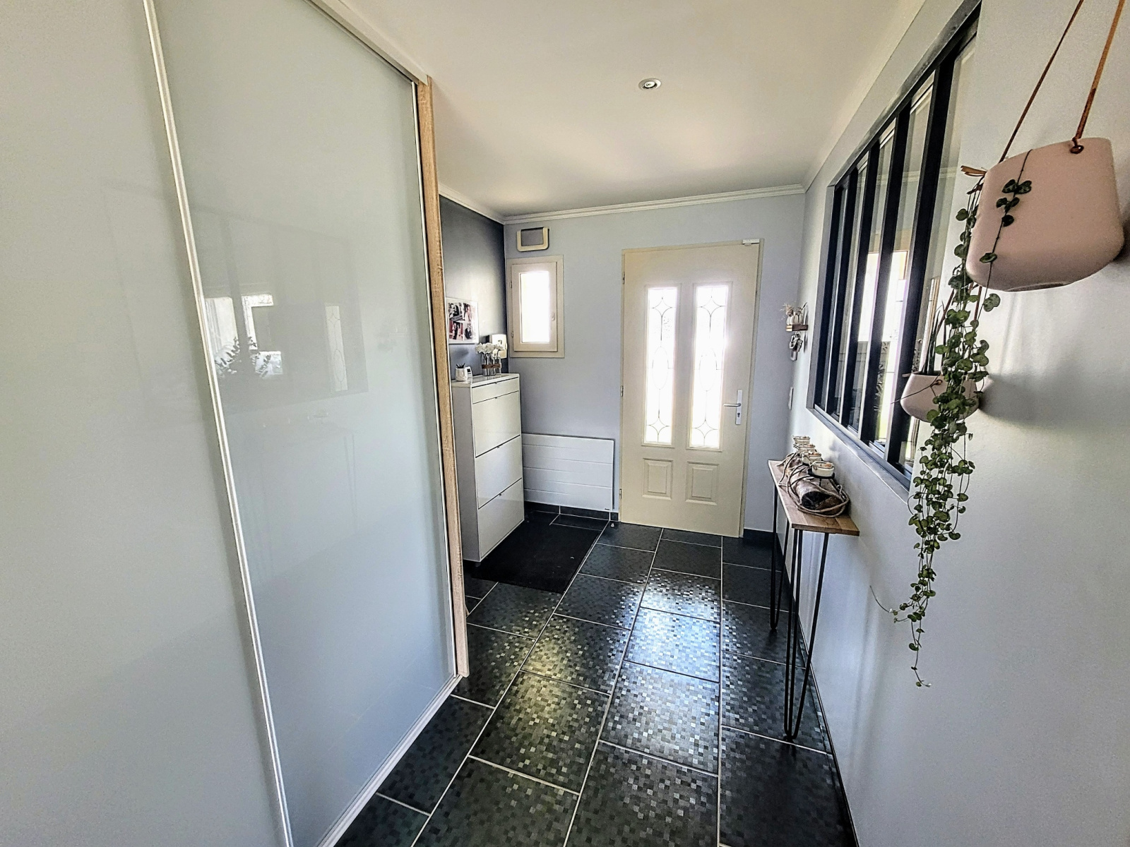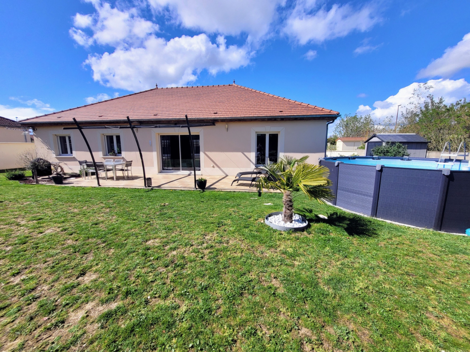 Cette maison dispose de 3 chambres spacieuses avec dressing offrant de nombreux rangements parfaits pour une famille. La vaste salle de bain est équipée d'une baignoire d'angle, d'une douche à l'italienne ainsi que de deux vasques, idéale pour se détendre après une longue journée de travail. Elle offre également un double salon/séjour d'environ 45 m² ainsi qu'une cuisine semi-ouverte équipée récente avec verrière. La maison est très lumineuse grâce à ses grandes baies vitrées donnant sur un jardin verdoyant avec une piscine hors-sol. Vous bénéficierez également d'un garage pour un espace de stockage en supplément.