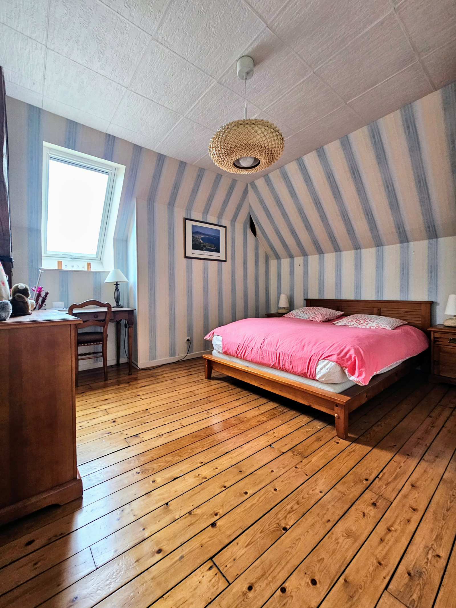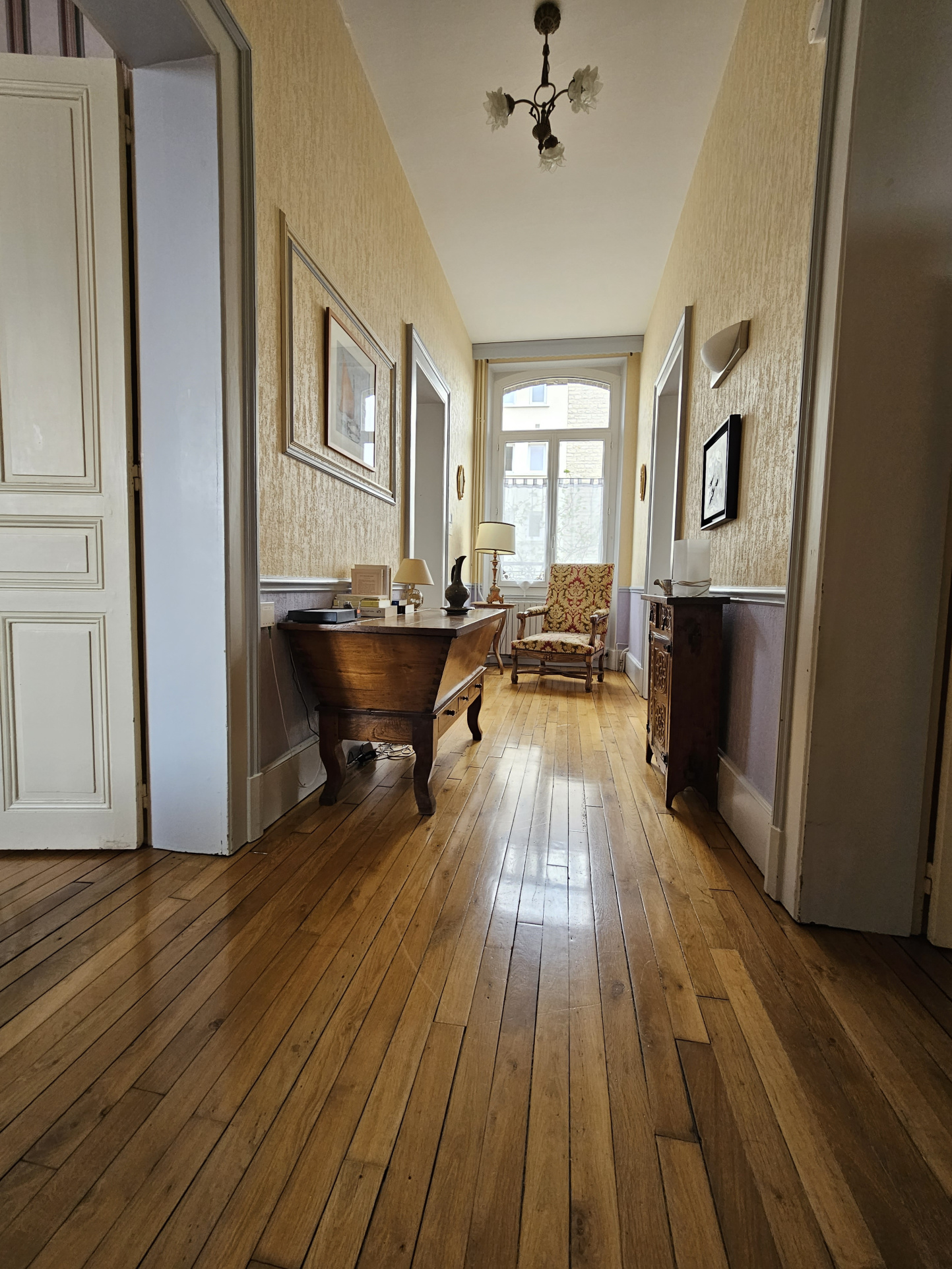 Le premier étage dispose d’un grand palier, une première chambre avec une salle de d’eau et bain avec toilettes privatifs, trois chambres.