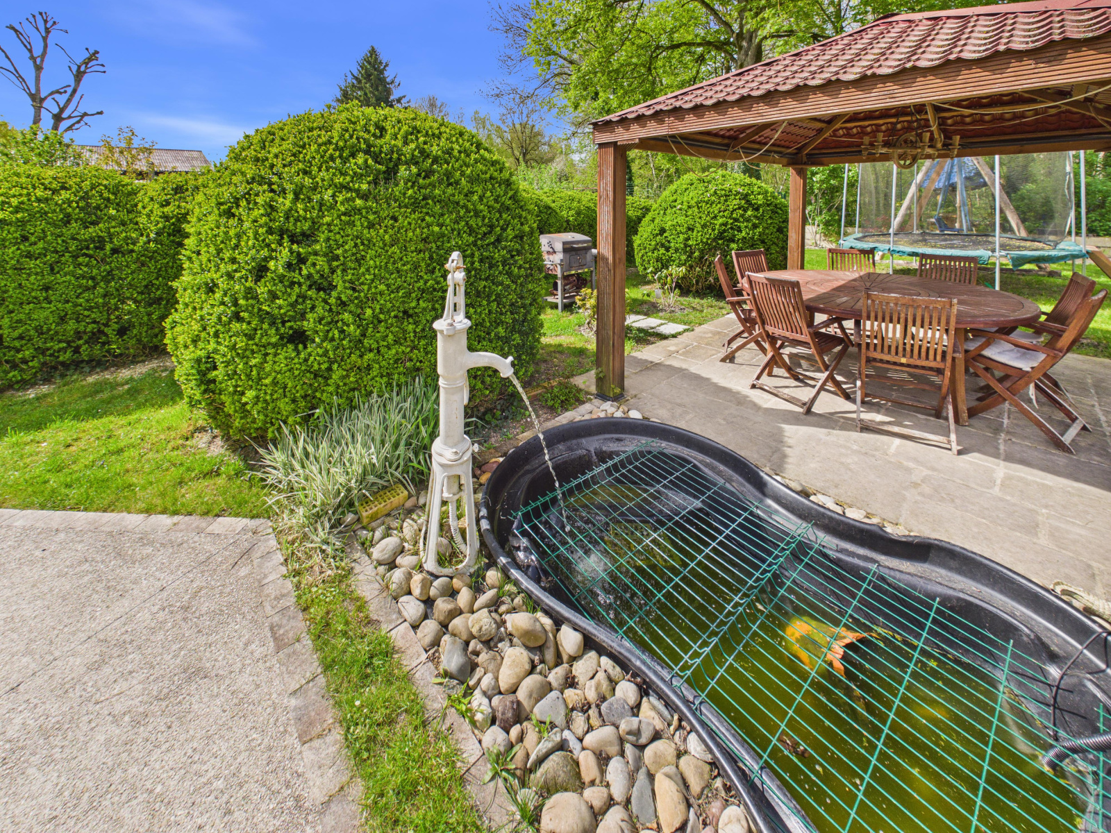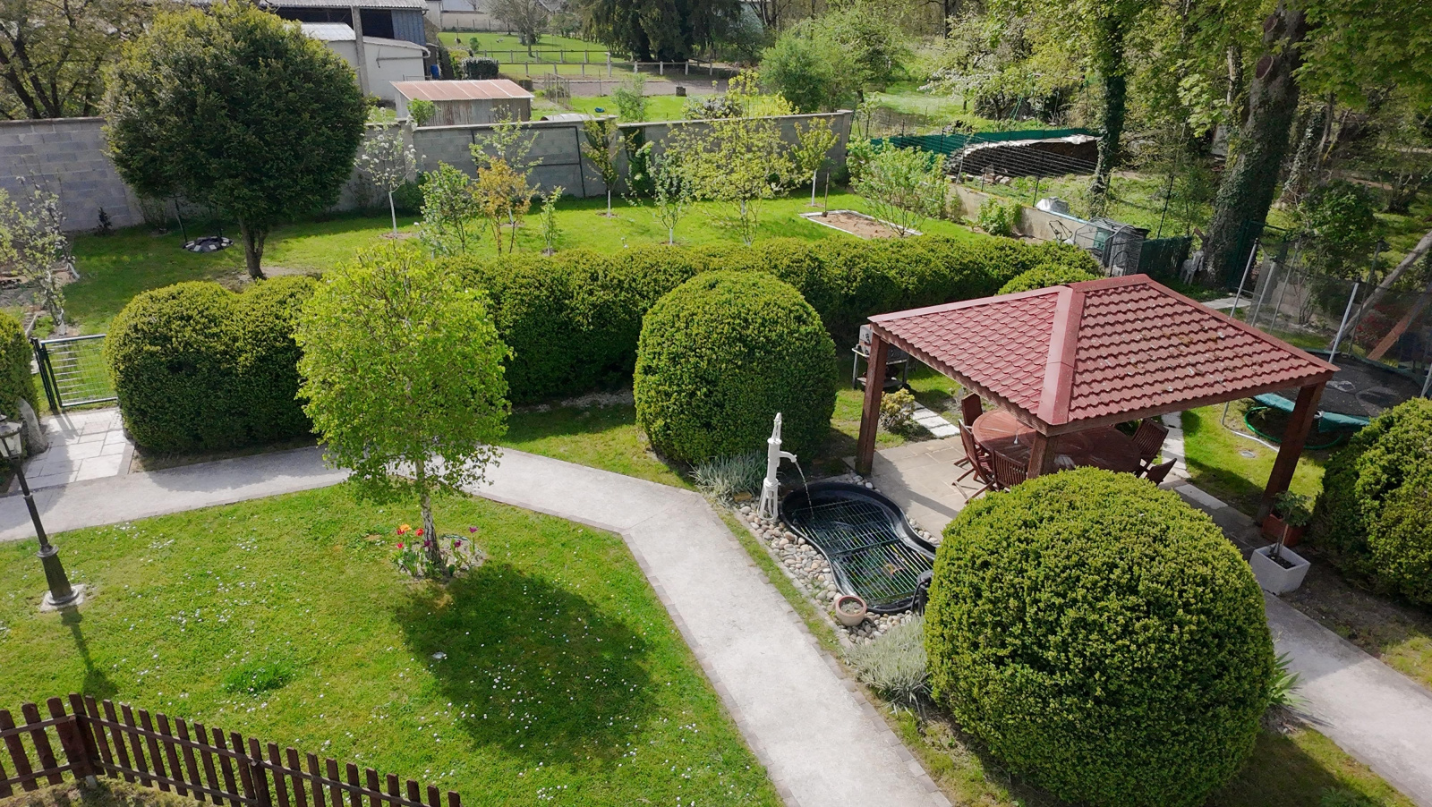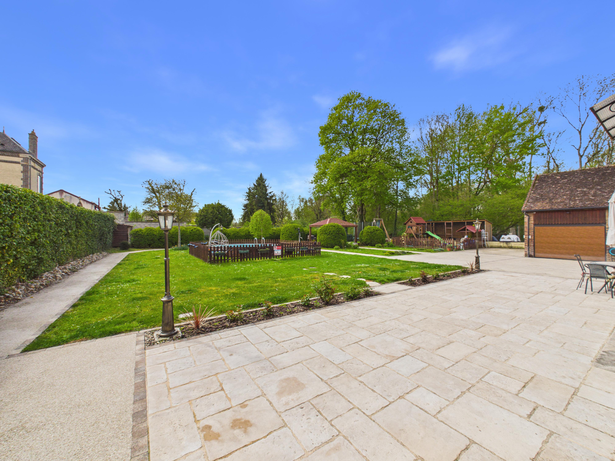 Implantée sur un magnifique terrain de 2 976 m², cette propriété offre un cadre de vie privilégié avec une piscine semi-enterrée parfaitement intégrée dans le jardin, idéale pour profiter des beaux jours.