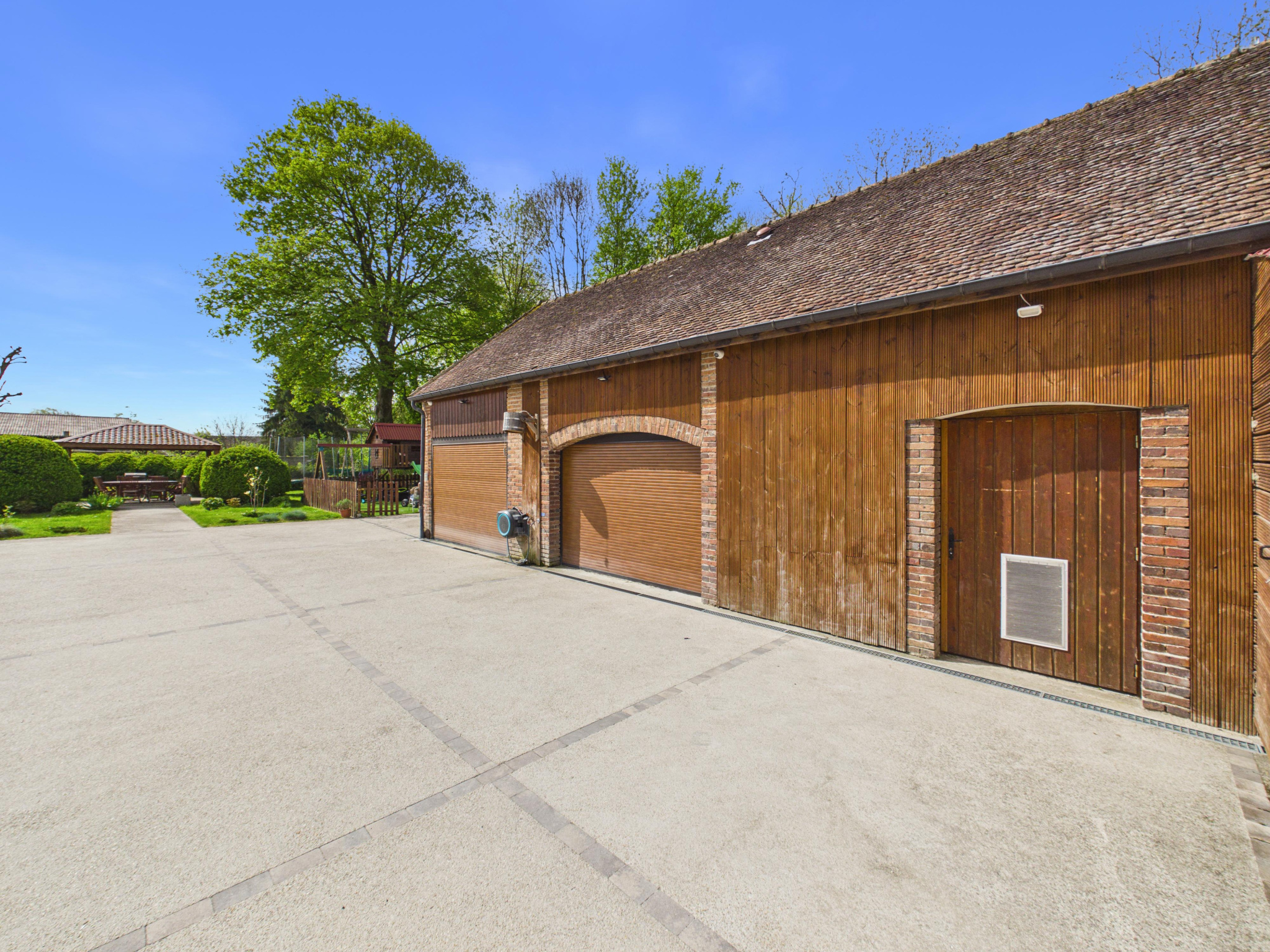 Côté stationnement et dépendances, le bien dispose d’un vaste garage de 86 m² et d’environ 20 places de stationnement extérieur, un atout rare pour accueillir famille et invités ou développer une activité.